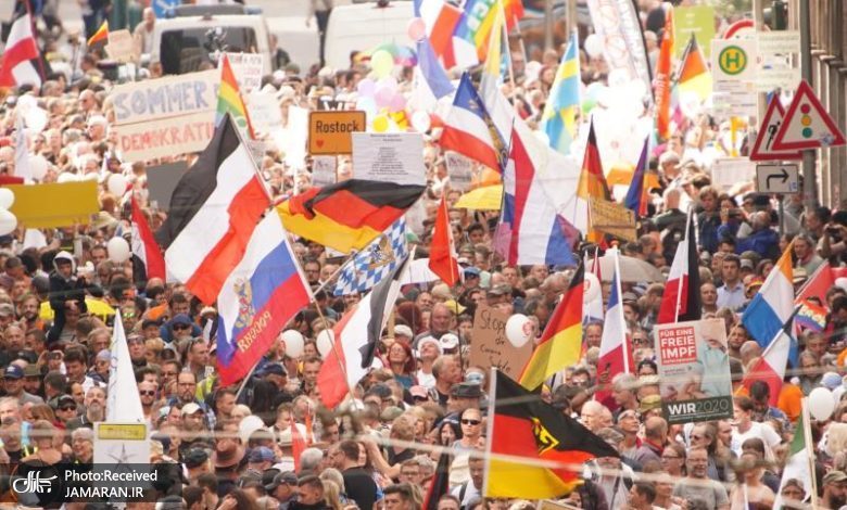 هزاران معترض از ساعت 9 صبح در برابر دروازه «براندبورگ» در مرکز برلین جمع شده و آماده راهپیمایی بودند، اما پلیس اجازه حرکت به آنها نداد.
