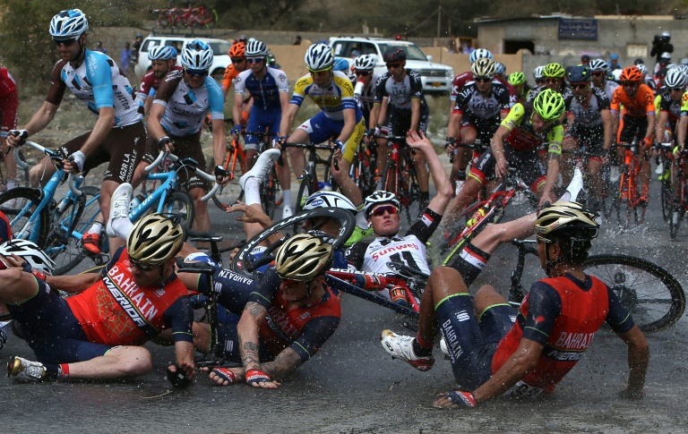 به گزارش پایگاه اطلاع رسانی و خبری جماران،دوچرخه سواران در مرحله  پنجم تور دوچرخه سواری عمان روی زمین سقوط می کنند.