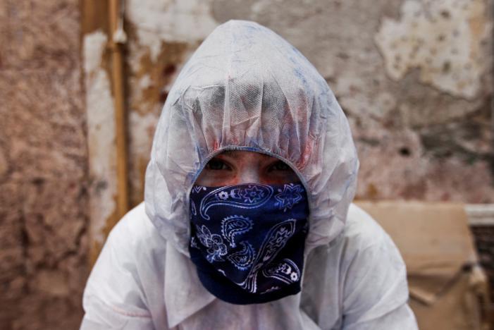 دیوارهای خانه ها با پلاستیک پوشیده شده بود و کسانی که نمی خواستند در این مراسم شرکت کنند، از بالکن های خانه شان به تماشای این جشن می پرداختند.