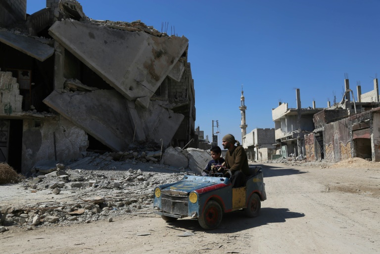 به گزارش پایگاه اطلاع رسانی و خبری جماران، یک شهروند سوری خودروی اسباب بازی را به همراه کودکی در شهرک بیت نائم در الغوطه شرقی در نزدیکی دمشق می راند.