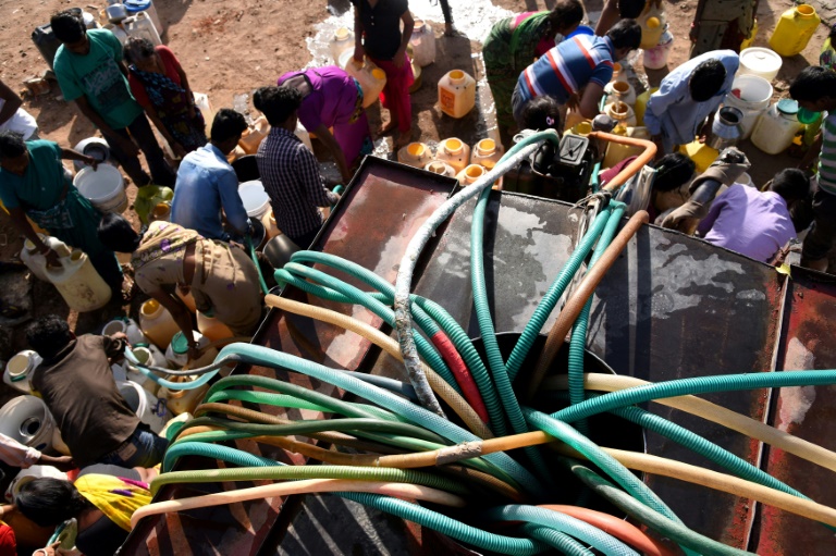 به گزارش پایگاه اطلاع رسانی و خبری جماران، شماری از شهروندان هندی در حال پر کردن ظرف ها و بشکه های خود از آب نوشیندنی از یک تانکر در بوپال هستند.