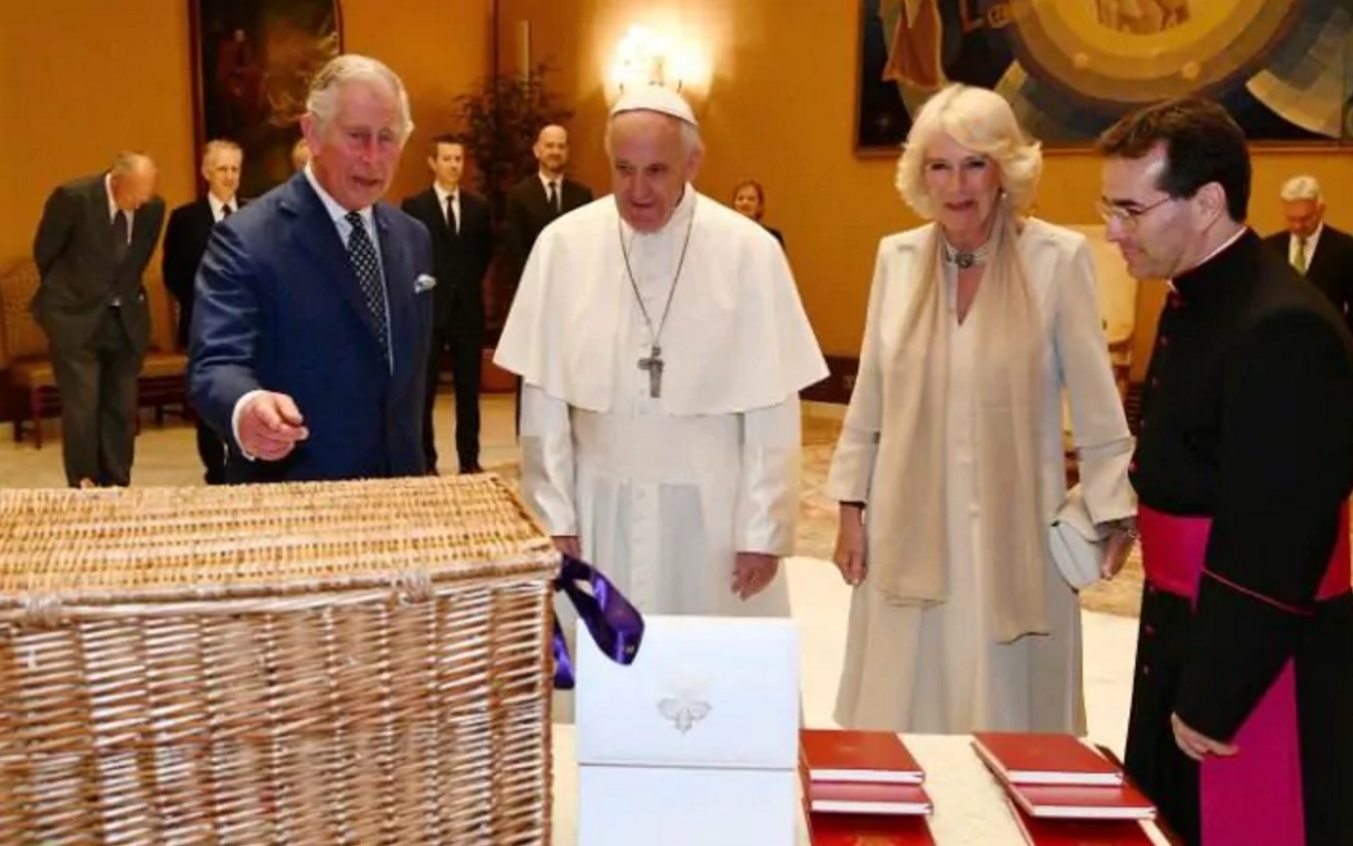به گزارش پایگاه اطلاع رسانی و خبری جماران، پاپ فرانسیس در حال تبادل هدایا با شاهزاده چارلز ولیعهد انگلیس و همسرش «کاملیا» در یک دیدار خصوصی در واتیکان هستند.