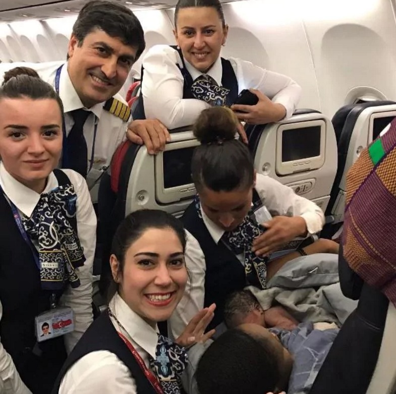 خدمه این هواپیمای ترکیش ایرلاینز توانستند با تلاش بسیار این نوزاد دختر را که «کادیجو» نام گرفت، سالم به دنیا بیاورند.