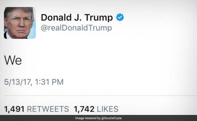 به گزارش پایگاه اطلاع رسانی و خبری جماران، «دونالد ترامپ» رئیس جمهور آمریکا در صفحه توئیتر خود پیام کوتاهی با کلمه «ما» نوشت که بلافاصله آن را حذف کرد.