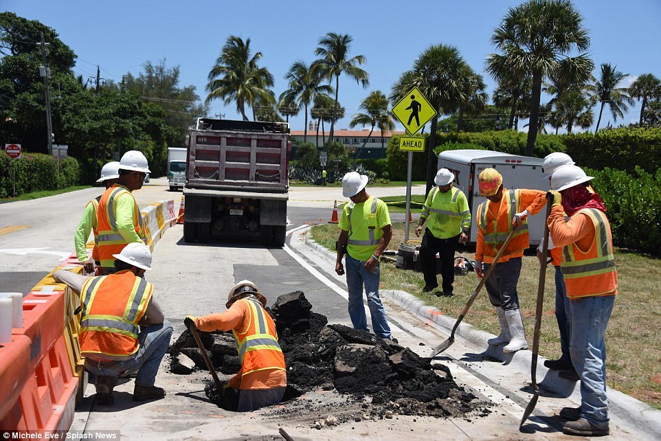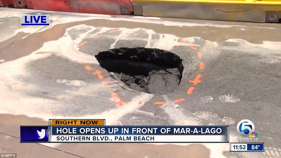 این چاله دقیقا در برابر تفریحگاه مارالاگو دهان باز کرده، در نزدیکی جایی که یک شاه لوله آب عبور کرده است.
