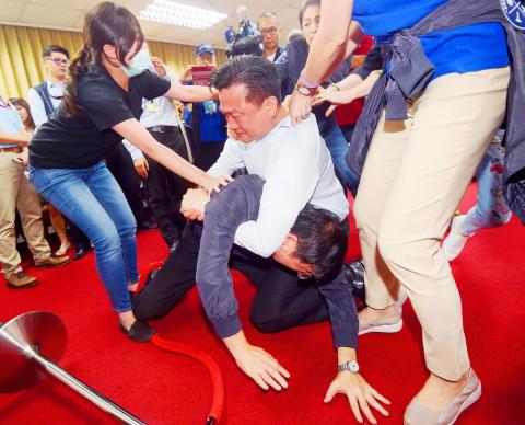 در این جنجالی اعضای حزب حاکم و مخالف - حزب پیشروی دموکرات و حزب ملی گرا - به جان هم افتادند.
