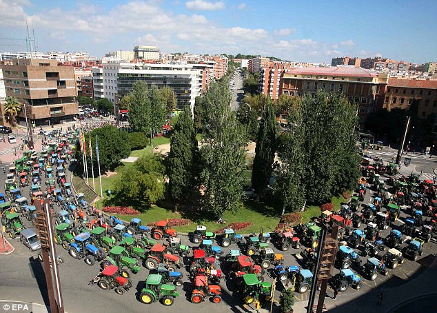 به گزارش پایگاه اطلاع رسانی و خبری جماران، در آستانه برگزاری همه پرسی در منطقه «کاتالونیا»، ده ها تراکتور برای محافظت از حوزه های رای گیری به شهر «بارسلون» آمدند.