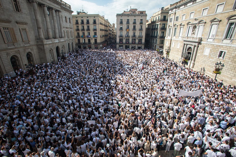 مردم اسپانیا در لباس هایی سفید رنگ در شهر «مادرید» پایتخت اسپانیا و «بارسلون» مرکز دولت خودمختار کاتالونیا با شعار «آیا می شود حرف بزنیم؟» پیامی به سیاستمداران اسپانیایی ارسال کردند.