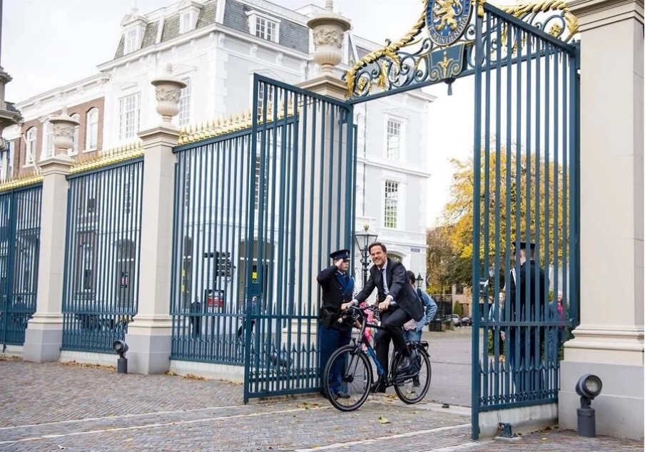 مارک روته نخست وزیر هلند، برای اعلام خبر تشکیل دولت جدید با دوچرخه به دیدار «ویلم-الکساندر» پادشاه این کشور رفت. وی که برای این دیدار به کاخ سلطنتی رفته بود دوچرخه خود را نیز در مقابل ساختمان ورودی قفل کرد.