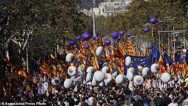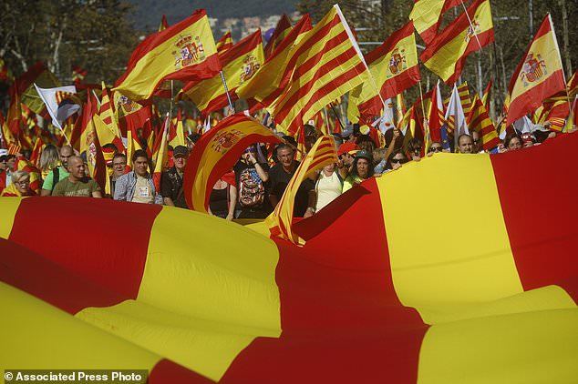 تظاهرات کنندگان با پرچم اسپانیا و شعارهایی مانند «زنده باد اسپانیا» مخالفت خود با جدایی کاتالونیا را اعلام کردند.