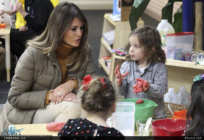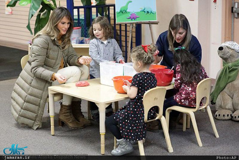 بانوی اول 47 ساله در این سفر کت 2.960 دلاری به تن داشت و به دیدار خانواده و کودکان در پایگاه شکاری «المندورف-ریچاردسن» در این ایالت رفت. او برای کودکان ساز دهنی زد، با آنها کاردستی ساخت و خمیربازی کرد.