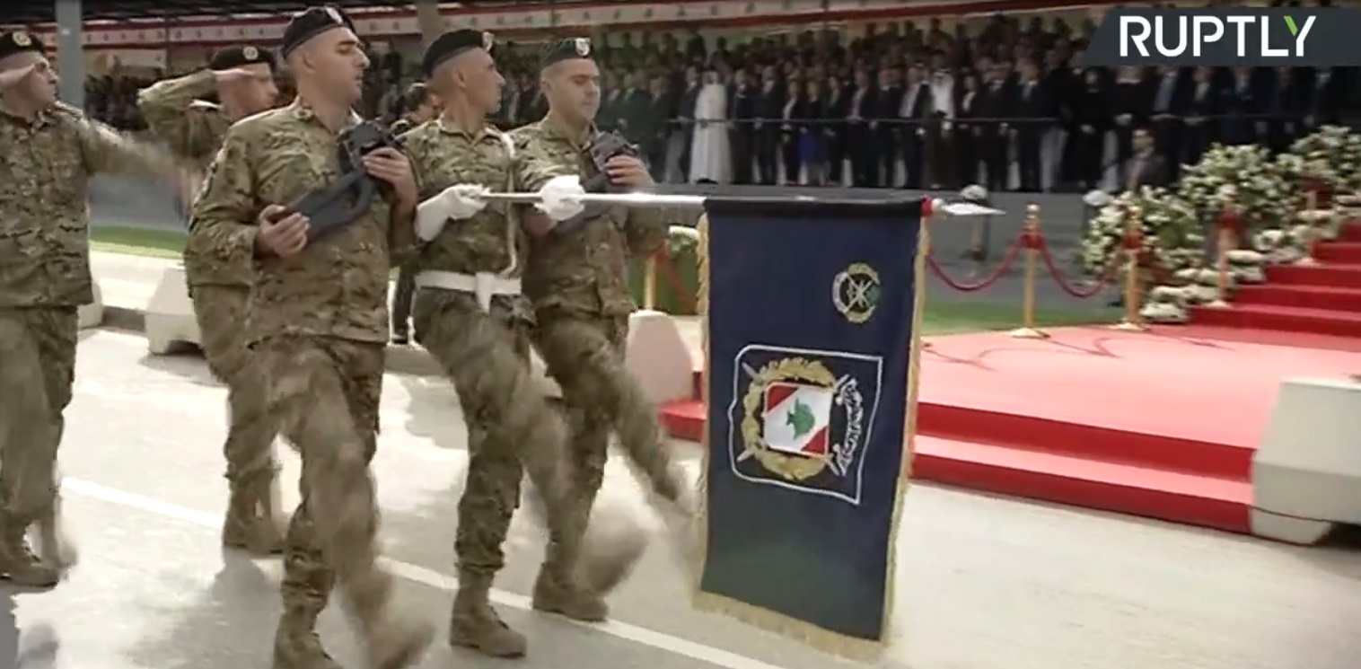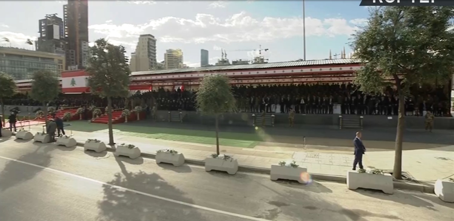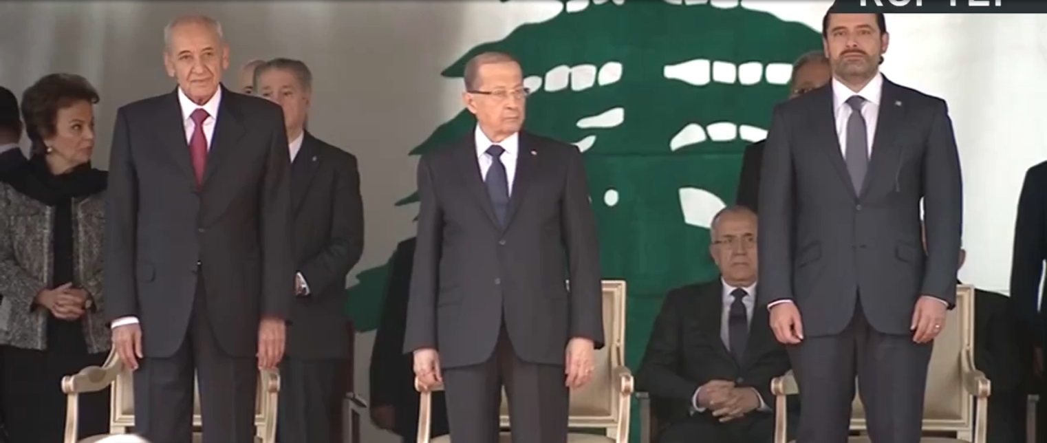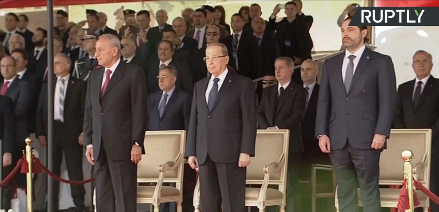 «نبیه بری» رئیس پارلمان لبنان نیز پس از حریری به مراسم رسید و با وی مصافحه کرد. «میشل عون» رئیس جمهور لبنان نیز پس از سان دیدن، به جایگاه مهمانان آمد و او نیز با حریری مصافحه کرد.