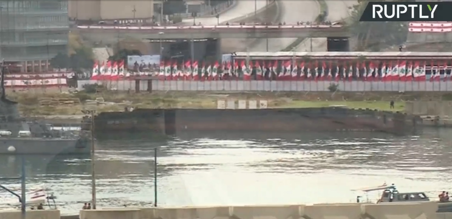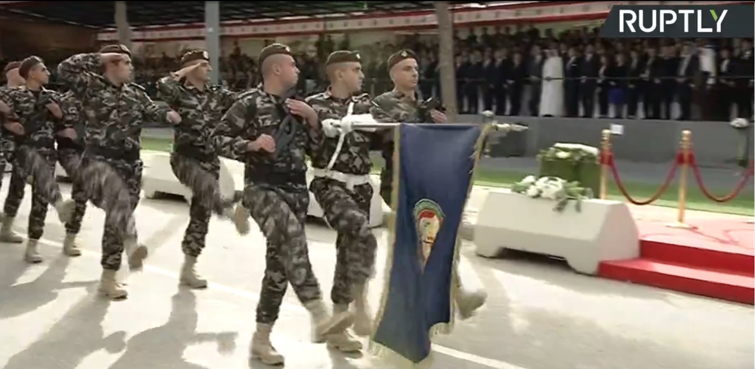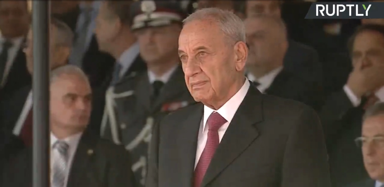 «نبیه بری» رئیس پارلمان لبنان نیز پس از حریری به مراسم رسید و با وی مصافحه کرد. «میشل عون» رئیس جمهور لبنان نیز پس از سان دیدن، به جایگاه مهمانان آمد و او نیز با حریری مصافحه کرد.