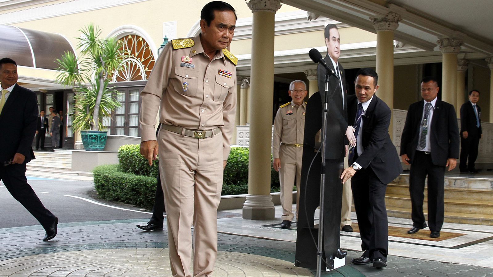 به گزارش پایگاه اطلاع رسانی و خبری جماران، «پرایوت چان- اوچا» نخست وزیر تایلند بعد از پایان سخنرانی خود یک مجسمه مقوایی از خود را کنار میکروفون قرار داد تا خبرنگاران از مجسمه مقوایی او مصاحبه بگیرند.