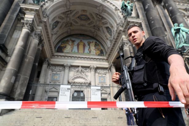 ویدئوهای شاهدان عینی، نیروهای امنیتی و پلیس آلمان را در حالی که اسلحه های خودکار داشتند در اطراف کلیسا نشان داده است.