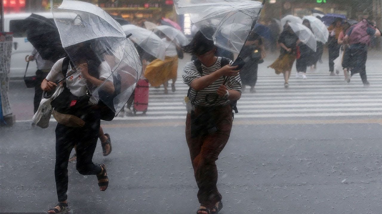 تصاویر این طوفان در ساحل جنوب غرب توکیو، طغیان دریا و برخورد امواج عظیم به صخره‌ ها را نشان می‌ دهد.