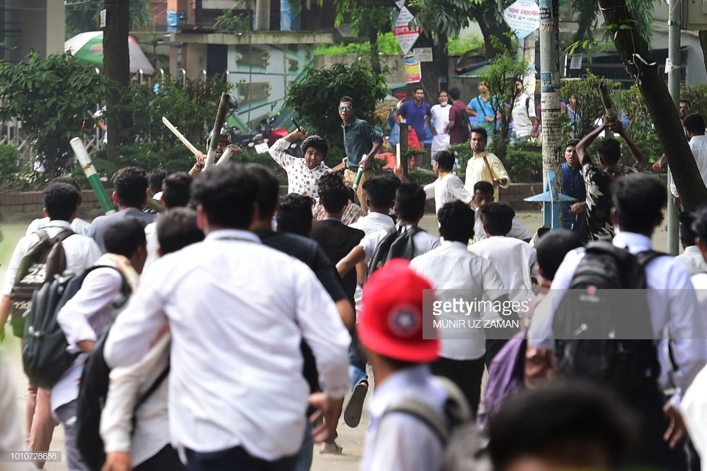 گفته می شود پلیس بنگلادش معترضان را با گلوله پلاستیکی و گاز اشک آور هدف قرار می داد.
