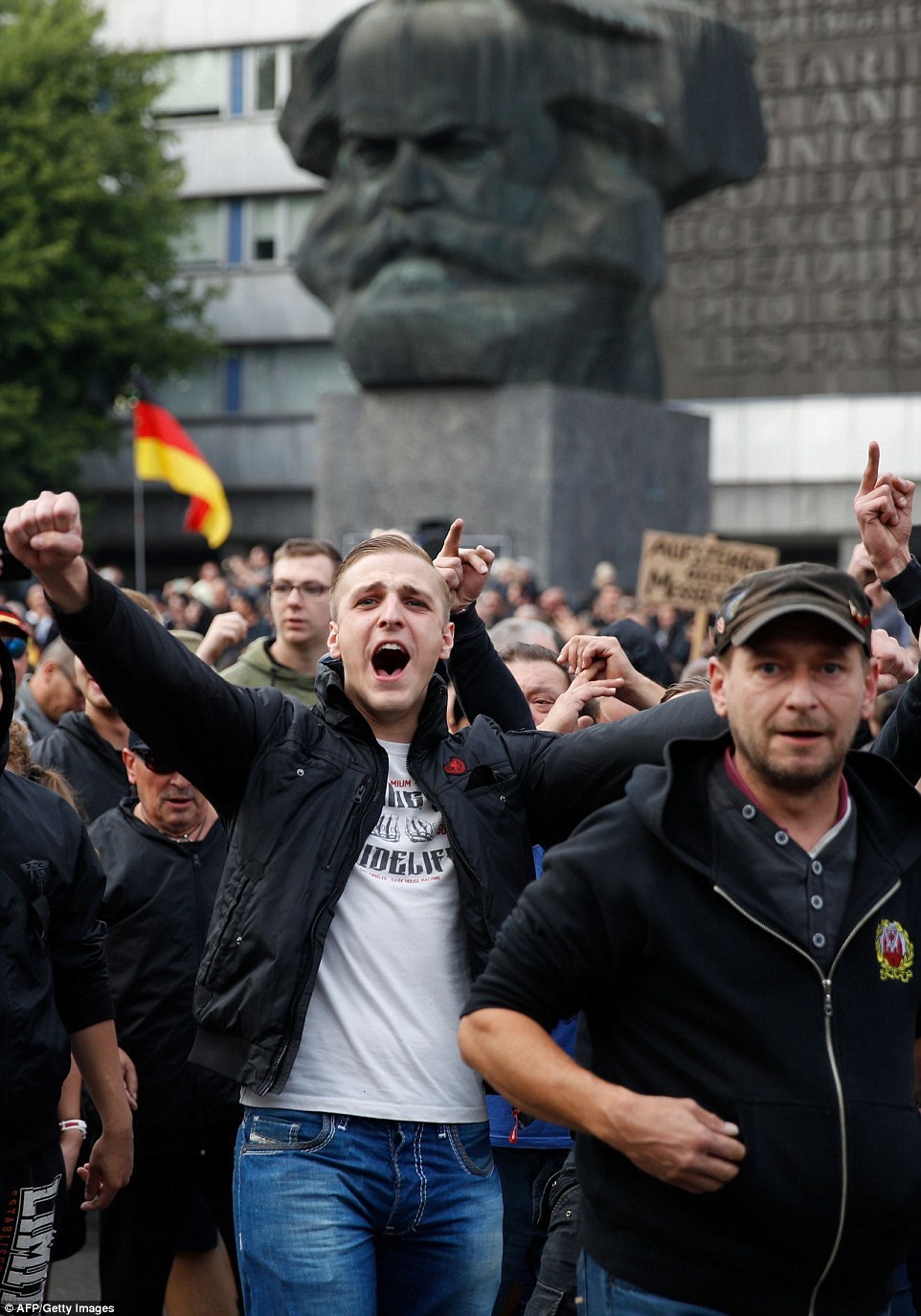 راست گراها در اعتراض به یک چاقو کشی میان یک فرد آلمانی و دو نفر دیگر که گفته میشود سوری و عراقی بوده اند به خیابان ها آمده و شعارهای نژادپرستانه مانند «این شهر ماست» سر دادند. به دنبال این تظاهرات معترضان چپ گرا هم در مخالفت با این افراد در نزدیکی مجسمه «کارل مارکس» به تظاهرات پرداختند.