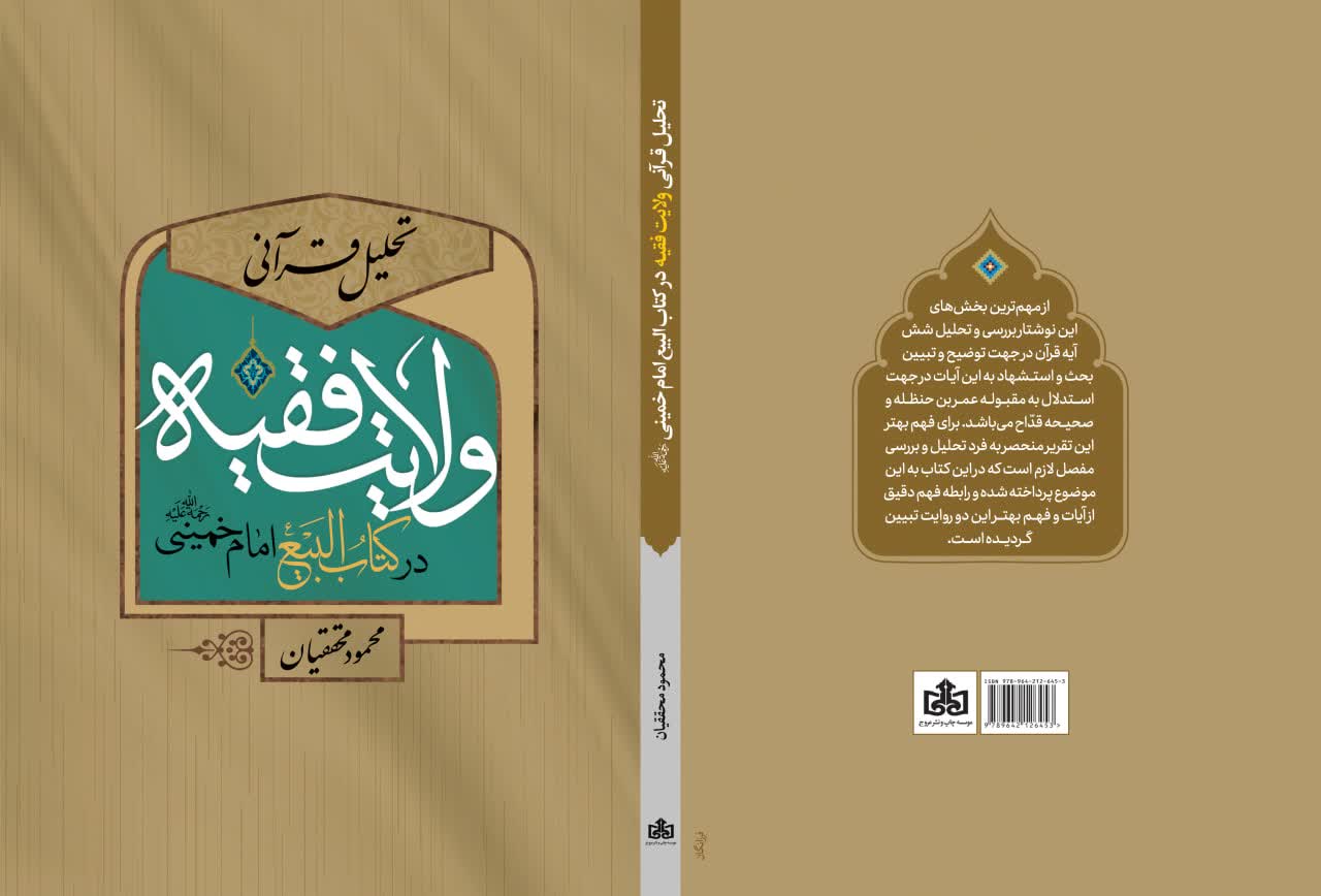 کتاب «تحلیل قرآنی ولایت فقیه در کتابالبیع امام خمینی(س)» به قلم حجتالاسلام و المسلمین محمود مققیان نوشته و توسط مؤسسه چاپ و نشر عروج وابسته به مؤسسه تنظیم و نشر آثار امام خمینی(س) در ۲۲۹ صفحه و با قطع وزیری، منتشر شد.