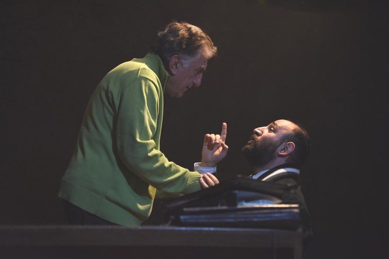 هر چه جلوتر میرویم به واسطه آنچه در متن میگذرد، نوع رابطه تیا و لوک تغییر میکند و موقعیتشان نسبت به هم عوض میشود. دیالوگها هم برای تماشاگر و هم برای بازیگر نفسگیرند و هدایت هاشمی و رضا کیانیان رفتهرفته شروع به کم کردن لباسهایشان میکنند. هاشمی پولیورش را از تن درمیآورد و کیانیان بارانیاش را. دیدن دو بازیگر حرفهای، یکی جوانتر و دیگری قدیمیتر در متن استخوانداری از کواچویچ آنقدر جذاب هست که متوجه گذشت زمان نشویم.