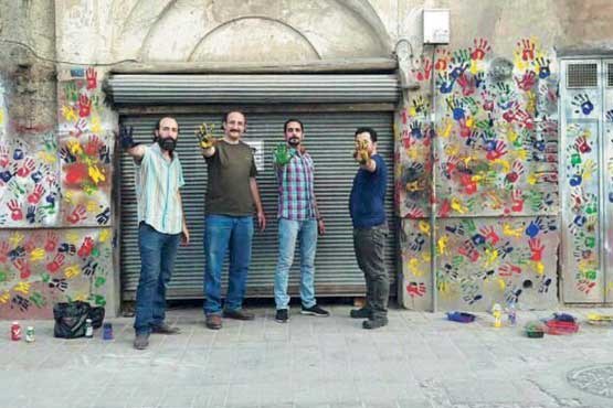 با این تفاوت که این بار به جای رنگ سیاه و بیریخت اسپری از جای دستهای رنگی استفاده شده است.