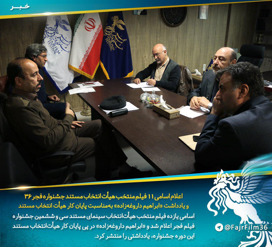 به گزارش جی پلاس، اسامی یازده فیلم منتخب هیأتانتخاب سینمای مستند سی و ششمین جشنواره فیلم فجر اعلام شد و «ابراهیم داروغهزاده» در پی پایان کار هیأتانتخاب مستند این دوره جشنواره، یادداشتی را منتشر کرد.