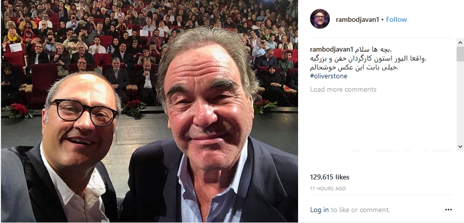 رامبد جوان با انتشار این سلفی در صفحه اینستاگرامش نوشت: «واقعا الیور استون کارگردان خفن و بزرگیه. خیلى بابت این عکس خوشحالم.»