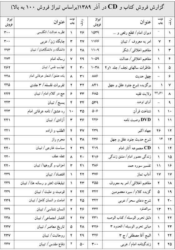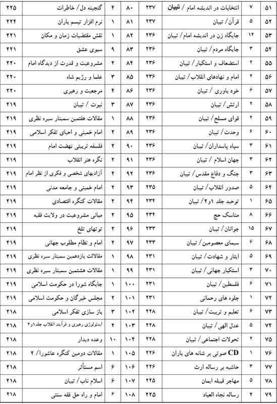 وصیت نامه حضرت امام و مجموعه آثار ایشان نیز آثار پرفروش در بخش نرم افزارهای چندرسانه ای بوده است.