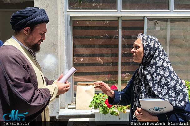 گویا اشتیاق بانو نشیبا تمامی نداشت و تا کنار دفتر یادگار امام او را همراهی کرد. وقتی اطراف حاج سید حسن آقا خلوت تر شد به شوق گرفتن عکس یادگاری دوباره نزد او آمد و روزهایی را به یاد خمینی جوان آورد که در کودکی با آن موهای بور کنار امام بود.