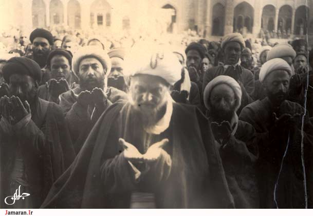 پایگاه اطلاع رسانی و خبری جماران در آستانه تاسوعا و عاشورای حسینی عکس منتشر نشده ای از ایشان را در حال اقامه نماز جماعت در حرم مطهر حضرت معصومه در اختیار علاقمندان قرار می دهد . در این تصویر، تسبیح تربت در میان عمامه مرحوم آیت الله العظمی حائری نمایان است. مرحوم حائری پدر بزرگ همسر شهید آیت الله سید مصطفی خمینی است .