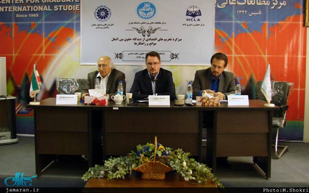در این نشست که به همت سه نهاد علمی- تخصصی مرکز حقوقی و داوری لاهه، مرکز مطالعات عالی بین المللی دانشگاه تهران و اتاق بازرگانی، صنایع، معادن و کشاورزی ایران برگزار شد، دکتر علی ماروسی رئیس شورای مشورتی مرکز حقوقی و داوری لاهه، دکتر محمد حسین نبی عضو کانون وکلای تهران و سفیر سابق ایران در نیکاراگوئه و دکتر ابو محمد عسگرخانی رییس مرکز مطالعات عالی بین المللی دانشگاه تهران، به طرح مباحثی درخصوص تحریم های یکجانبه و چندجانبه علیه ایران، مغایرت های آنها با ممعاهدات حقوق بشری و راه های برون رفت از آن پرداختند.