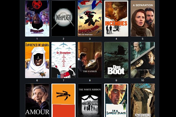 در رده ۶ تا ۱۰ نیز «لورنس عربستان» فیلم ۱۹۶۲ دیوید لین، «دکتر استرنج لاو» استنلی کوبریک، «پدر» فلورین زلر، «کشتی» ولفگانگ پترسن محصول ۱۹۸۱ و «زندگی دیگران» فلوریان هنکل فون دونرسمارک برنده جایزه اسکار بهترین فیلم غیرانگلیسی‌زبان سال ۲۰۰۶ جای گرفته اند.