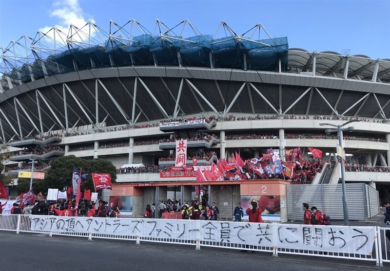 هواداران ژاپنی با نظم خاصی داخل و بیرون ورزشگاه به تشویق تیم کاشیما میپردازند. هواداران تیم کاشیما، بیرون ورزشگاه منتظر ورود اتوبوس این تیم بودند که به محض ورود اتوبوس تیمشان شروع به تشویق کردند.