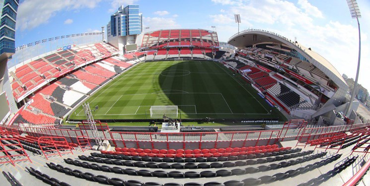 * درهای استادیوم محمد بن زاید هنوز به روی تماشاگران باز نشده و هیچ شخصی روی سکوها نیست.