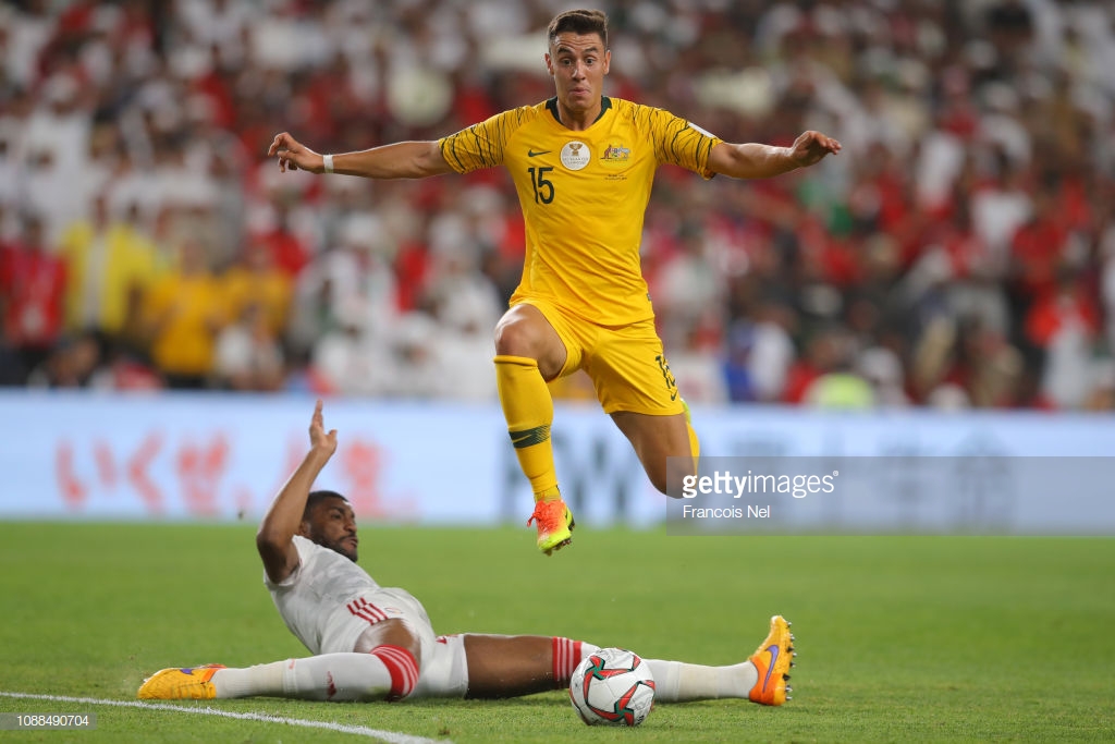 در نیمه دوم این بازی استرالیا که نمی خواست این بازی هم به مانند بازی گذشته به ضربات پنالتی کشیده شود، حملات خود را بیشتر کرد. در دقیقه 63 این بازی جیانو موفق به گلزنی شد اما داور اعلام کرد متئو لکی که پاس گل را داد در آفساید بوده است. در دقیقه 68 این دیدار روی پاس به عقب اشتباه مدافع استرالیا، علی مبخوت با متئو رایان تک به تک شد و توانست با دریبل این دروازه بان گل اول امارات را به ثمر برساند. در آخرین دقایق برخورد سختی میان فارس جمعه و متئو لکی صورت گرفت. سر لکی شکست و جمعه هم با برانکارد به بیرون رفت. در نهایت این بازی با نتیجه یک برصفر به نفع امارات میزبان به پایان رسید تا استرالیا مدافع عنوان قهرمانی هم مانند کره مدعی هم حذف شود.