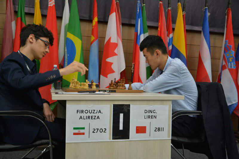 فیروزجا در بازی اول مهره سیاه را داشت و در شرایطی که بازی کاملا در وضعیت متعادل بود در تنگی زمان دچار اشتباه شد و ناباورانه بازی را از دست داد. باختی که با توجه به شرایط سنی فیروزجا و تجربه اندکش در نخستین حضور در جام جهانی کاملا شرایط روانی اش را به هم ریخت.