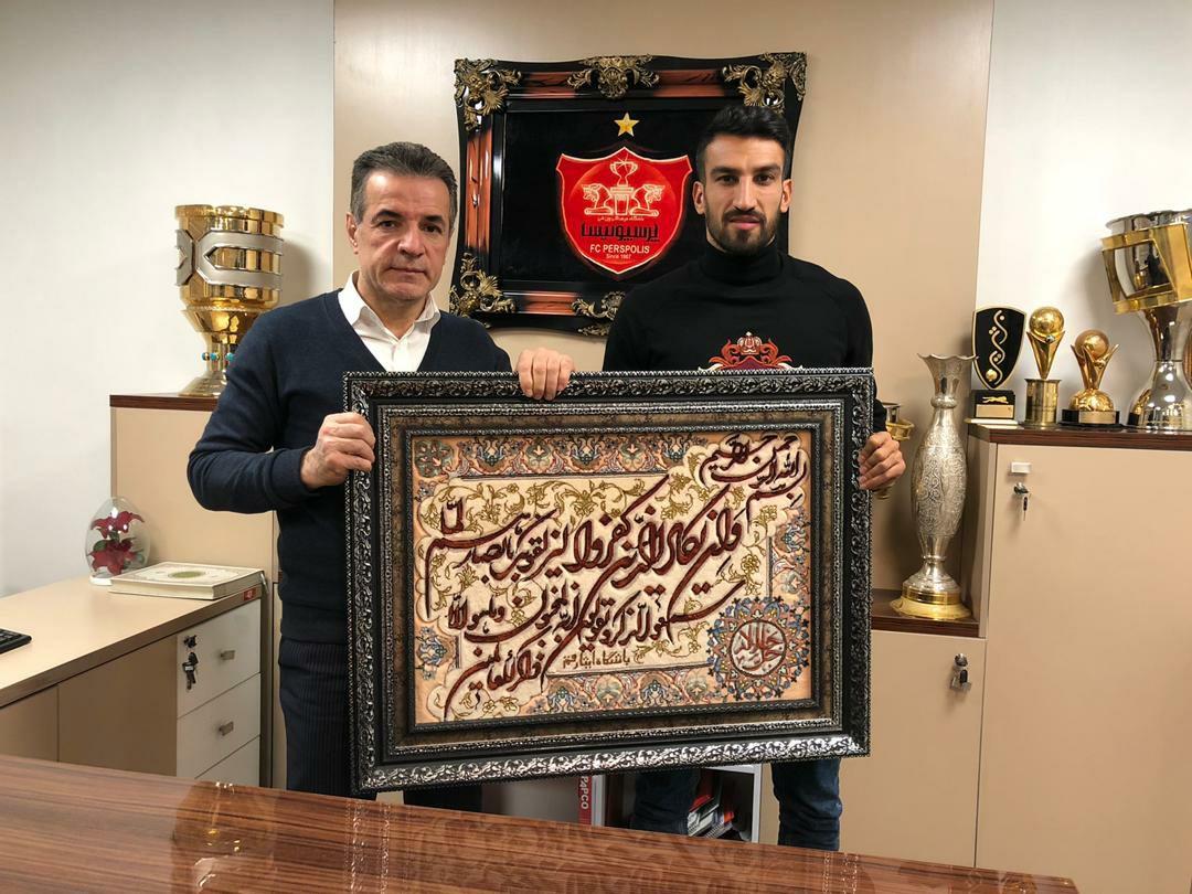 به گزارش سرویس ورزشی جی پلاس، حسین ماهینی بازیکن پرسپولیس دو روز پیش رضایت نامه اش را از این باشگاه دریافت کرد و از این تیم جدا شد. بعد از این اتفاق انصاری فرد مدیرعامل پرسپولیس از زحمات این بازیکن تقدیر کرد؛ انصاری فرد با اهدای یک تابلو فرش از ماهینی تشکر کرد اما نکته جالب توجه این است که این تابلو فرش را "باشگاه ایثار قم" به این باشگاه داده است. نامی که روی تابلو فرش هم حک شده است!