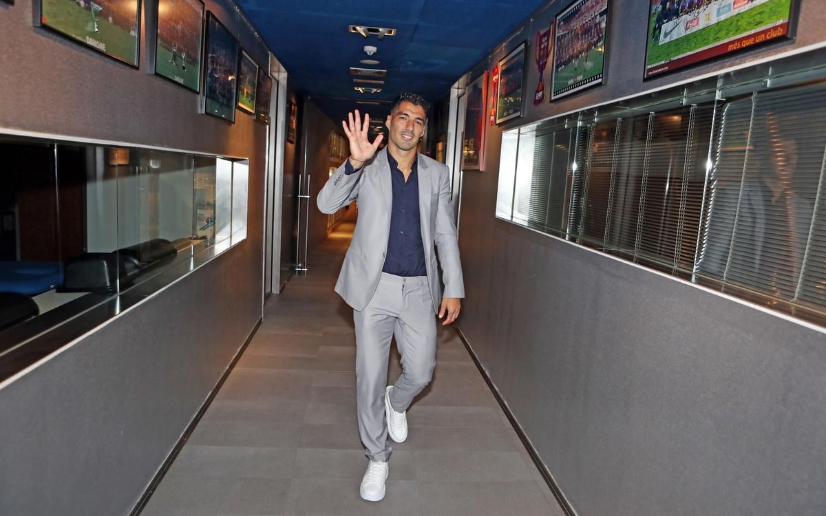 مراسم خداحافظی سوارس با وجود اینکه با حضور تماشاگران نبود اما بازیکنان و عوامل این بارسلونا حاضر بودند تا این چنین از مهاجم خود قدردانی کنند.