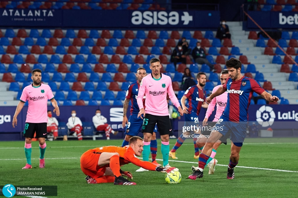 تیم فوتبال بارسلونا با تساوی مقابل لوانته امیدش برای کسب قهرمانی لالیگا کمرنگ شد.
