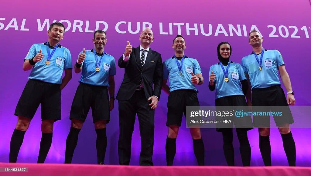 گلاره ناظمی، داور زن ایرانی به عنوان وقت نگهدار در فینال جام جهانی فوتسال مردان حضور داشت.