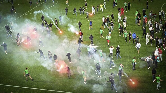 هواداران سنت اتین فرانسه، پس از سقوط این تیم به دسته پایینتر، شورش کردند.