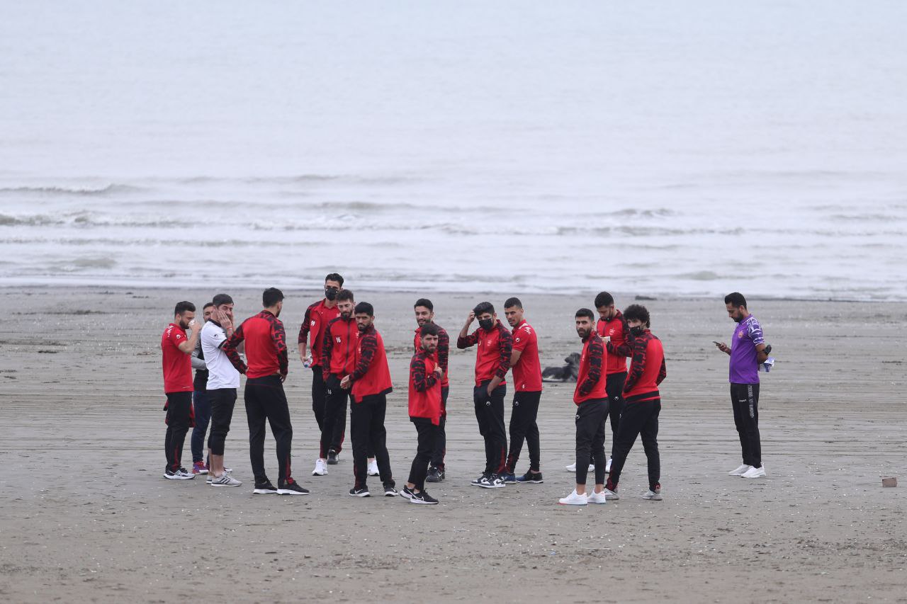 بازیکنان و مربیان پرسپولیس ساعاتی قبل از بازی با ملوان، به قدم زدن در ساحل دریای خزر پرداختند.