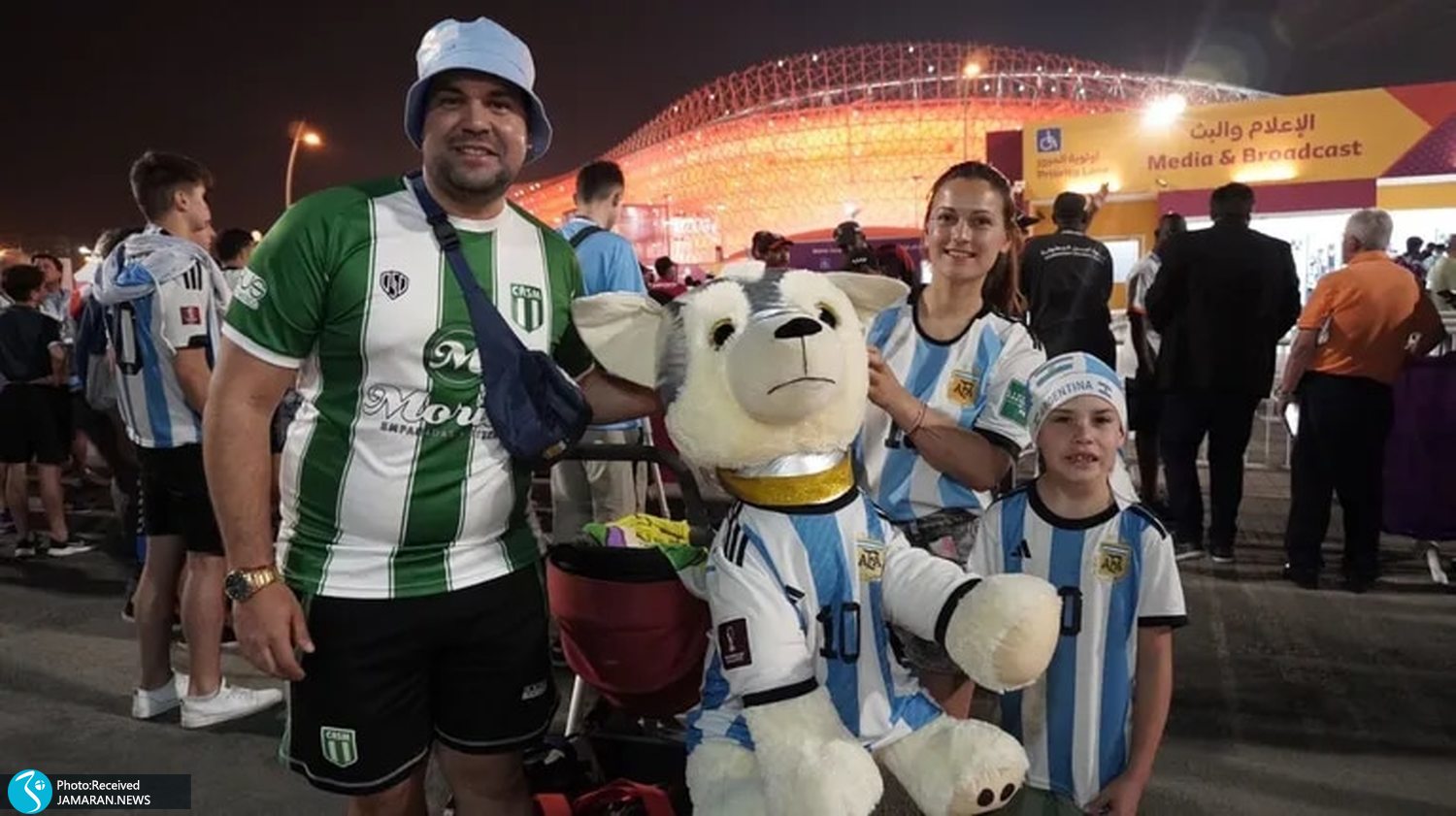 جی پلاس، فرشته مقدم: شنبه شب پیش از شروع دیدار آرژانتین و استرالیا در میان تماشاگران حاضر در صف برای ورود به ورزشگاه احمد بن علی یک عروسک پولیشی خیلی بزرگ توجه همه را جلب کرده بود.