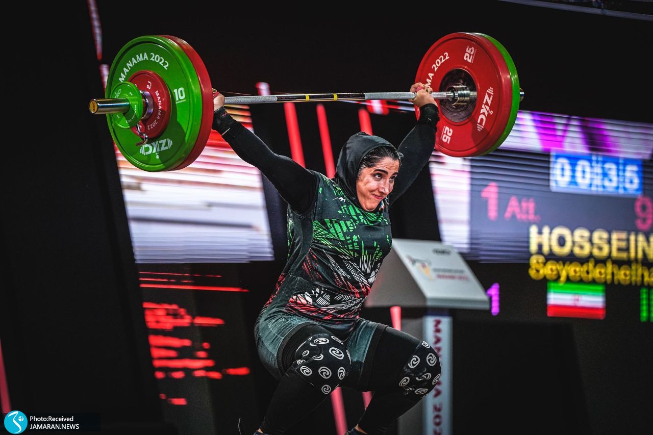 ۷۲- الهه رزاقی با رکورد مجموع ۲۰۱ کیلوگرم (ثبت شده در قهرمانی آسیا بحرین)