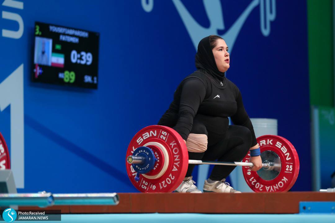 ۱- فاطمه کشاورز (فارس): با رکورد ۸۷ یک ضرب، ۱۱۰ دوضرب و مجموع 197 کیلوگرم