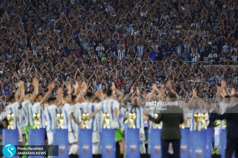 تیم ملی آرژانتین شب گذشته برای نخستین بار پس از قهرمانی در جام جهانی، در کشورش به میدان رفت که تماشاگران در ورزشگاه مونومنتال استقبال باشکوهی از بازیکنان داشتند. بازیکنان در پایان این بازی از جام قهرمانی رونمایی کردند و با هواداران جشن گرفتند.