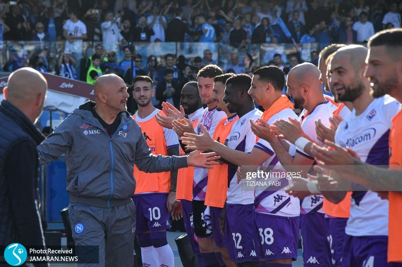 بازیکنان فیورنتینا قبل از آغاز دیدار این تیم مقابل ناپولی در ورزشگاه دیگو مارادونا برای قهرمان سری آ تونل افتخار زدند.