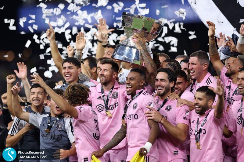 لحظه بالابردن جام قهرمانی توسط بازیکنان اینترمیامی؛ ابرستاره آرژانتینی بعد از قهرمانی با اینتر میامی به عنوان کاپیتان جام قهرمانی را بالای سر نبرد و بازوبند را به یدلین، بازیکن قدیمی تیم داد تا او جام قهرمانی را بالای سر ببرد.