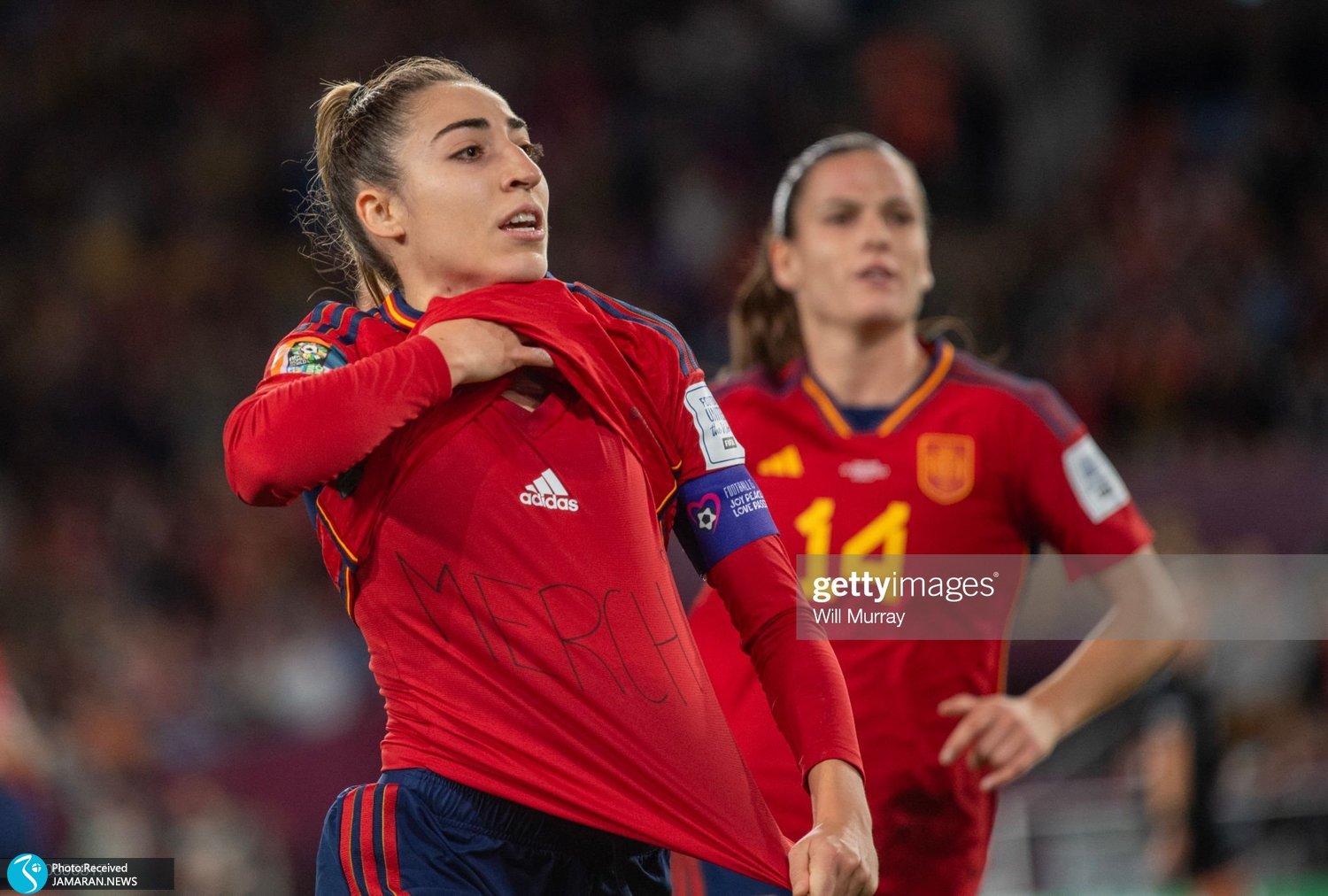 جی پلاس، فرشته مقدم: تیم فوتبال زنان اسپانیا یکشنبه با پیروزی یک بر صفر مقابل انگلیس برای نخستین بار قهرمان جهان شد. گل پیروزی و قهرمانی لاروخا را اولگا کارمونا در دقیقه ۲۹ به ثمر رساند. بازیکن اسپانیایی هنگام شادی گل پیراهنش را بالا زد و به نوشته روی آن MERCHI اشاره کرد.