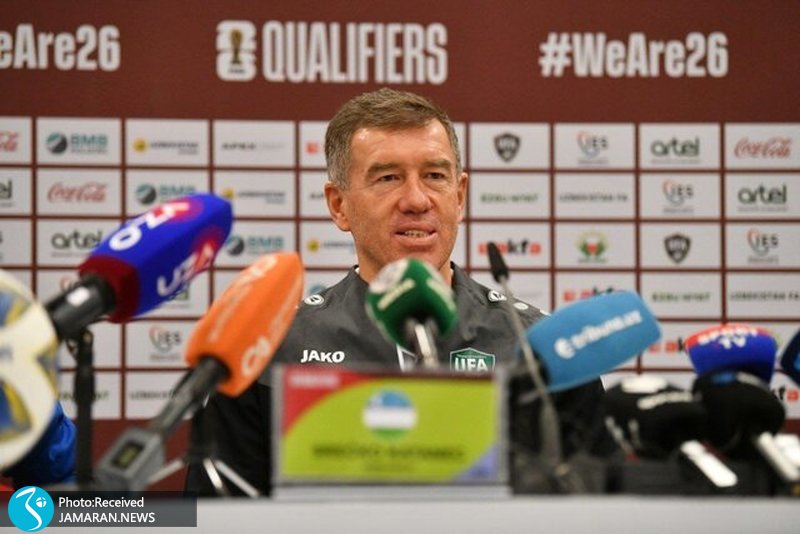 سرمربی ازبکستان درباره اینکه آیا از ماشاریپوف و اورونوف درباره ایران سوال کرده است یا خیر، گفت: خیر، نمیخواهم فردا این بازیکنان را بازی بدهم، اما شوخی کردم. خوشحالم آنها در ایران بازی میکنند. اورونوف خیلی پیشرفت کرده و از نظر تمرینی عملکرد خوبی دارد. امیدوارم فردا برای تیم بازی کند چون گاهی بازیکنان برای خودشان بازی میکنند. ایران همیشه روند با ثباتی دارد.